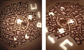 The project faces une of the most important challanges of the contemporary italian city: preservino centralità and competitività of the old town as an alternative to extra-urban shopping malls. In Chiari the project, winner of the second prize, starts from the renovation, with a new program of cultural-commercial functions, of three public buidings located in Piazza Zanardelli to refurbish the public space with the highest flexibility, combining formal quality and hi functionality of weekly market activities. The square is re-drawn by a stone texture referring to cultivated fields characterizing the surrounding landscape, and becoming a sort of carpet giving continuità to the old town streets. Several high elements, create shaded resting zones, space for commercial activities and areas for the weekly market.