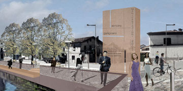 The intervention, on one hand, connects linearly the areas facing the walls, giving unity to the urban space, and, on the other hand, individuates punctual urban emergencies with commercial and cultural activities creating urban life and resolving functional problems (bus station, city park, building sto complete in order to define common spaces, walls garden…). In Gallonano, integrated in Soncino’s territori through various cyclo-paths going into the landscape, the project resolves the old town’s public space, paying attention to the big indefinite space in front of the cemetery.